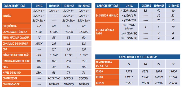 Equipamento com altíssima eficiência de aquecimento, com o coeficiente de performance de 3,7 ou seja, a cada 1kW consumido ele gera 3,7kW. Muito utilizado para sistemas centrais de água quente integrados ou não com aquecimento solar e gás.